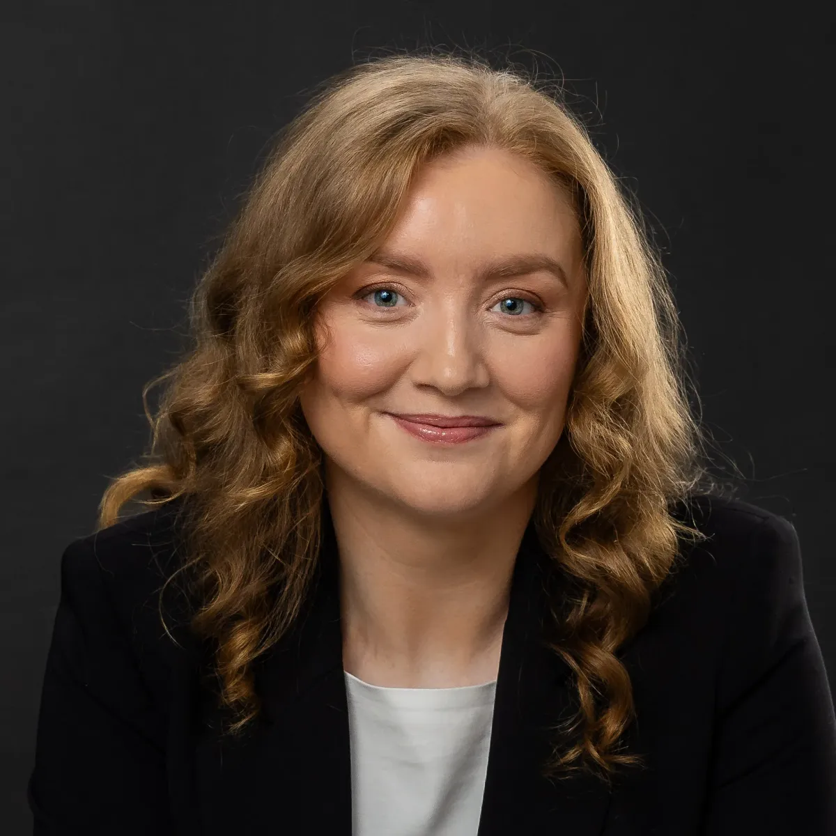Natural professional headshot of Amy with a friendly expression, taken in a studio near Dublin